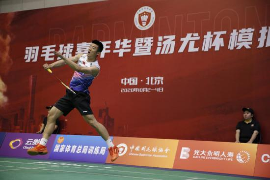 2020年10月4日,羽毛球嘉年华暨汤尤杯模拟赛的汤姆斯杯模拟赛在国家体育总局训练局羽毛球馆进行。新华社记者张晨摄