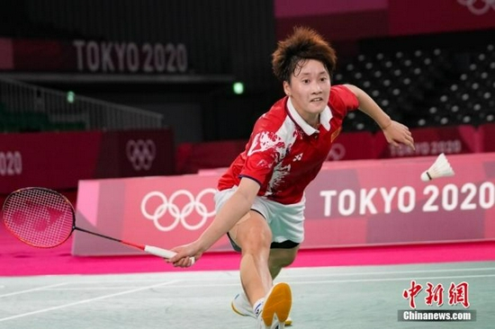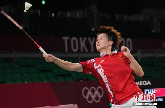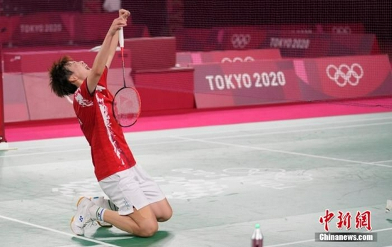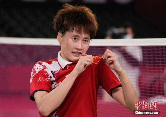 东京奥运会羽毛球女子单打决赛,陈雨菲战胜中国台北选手戴资颖获得金牌。中新社记者 杜洋 摄