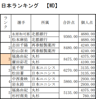 此前日本羽毛球协会公布了日本国内排名!去年年底举行的全日本综合锦标赛积分计入其中,但因疫情原因2020年并未举行所以采取2019年全日本综合锦标赛的积分,但2019年作为大学生、高中生参加全日本综合赛的除外。