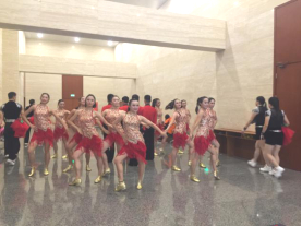 下午,福建省厦门市教育工会舞队抵达滨江文化中心后,立马在外场找地方进行练习,一刻也不放松。