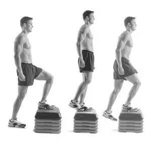 准备一张不易摇晃的椅子或平台,双眼直视前方并挺胸立于平台前,一脚跨上平台后,另一脚再跟进跨上,回到起始位置时应让先跨上平台的那脚先下。