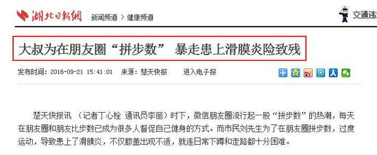 去年一位湖北的大叔,为在朋友圈“拼步数” ,暴走之后,患上滑膜炎险致残……