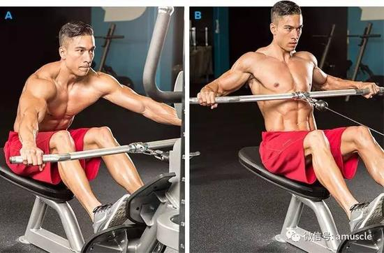 在高位下拉、坐姿划船和俯身划船中对前后倾斜身体的程度进行一定的限制。在绳索划船中,前后倾斜10度是可以的,但是过度地倾斜身体只会转重点,使这个动作成为一个下背部动作。问题咨询,健身交流微信:musclerush