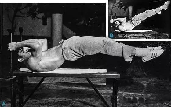 龙旗,这个动作由李小龙发明的一种锻炼腹肌的方式。