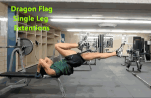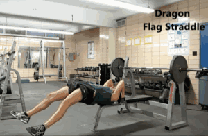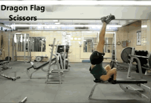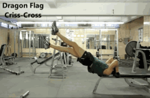 龙旗主要锻炼腹肌,同时需要手臂的力量。龙旗做得越直,力矩就越大,难度也越大,对腰腹核心肌肉有很强的刺激!