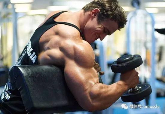 另一个能够显著地增加围度的动作时单臂斜托弯举。如果你肩部肌肉变得非常发达,那么本该作用于二头肌的刺激将转移到肩膀上。