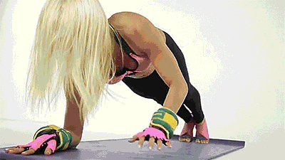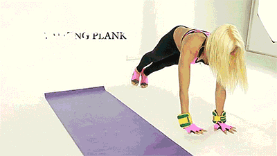 俯卧撑姿势身体向一侧运动,对于手臂,腹部,臀部,腿部是很不错的锻炼