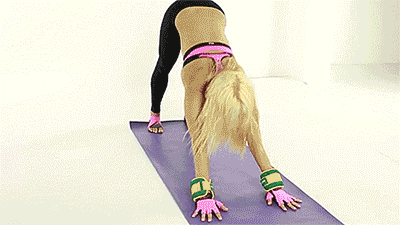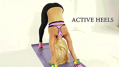 下犬式瑜伽动作,脚尖上抬提臀,拉伸背部