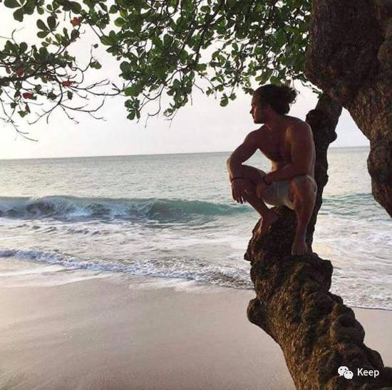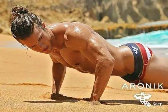 他喜欢徒手健身,经常在沙滩上就来几组俯卧撑;
