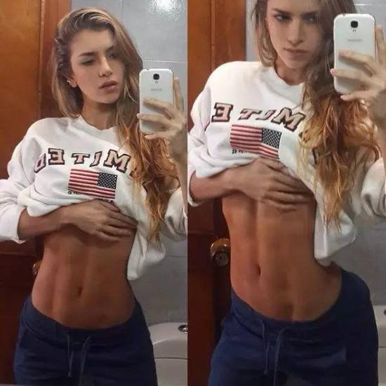 虽说臂部和腿部没有特别明显的肌肉,但从腹部就能看出绝对是肌肉型女生!而且身材十分匀称,看起来就很健康。
