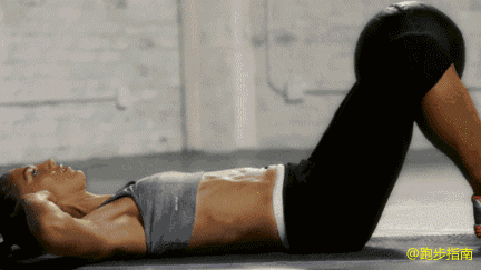 双手向后支撑上身(如图),左腿屈膝脚后跟撑地,右腿稍稍屈膝向上抬高,腹部发力,将臀部尽量向上抬到最高,然后再放低,如此重复30次。