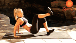 坐在瑜伽垫上,双腿屈膝并拢,双臂向前伸直,收紧腹部,使上身迅速向后躺下,同时双手撑地,双腿连带臀部向上抬高,然后在迅速恢复坐姿。此动作重复30次。