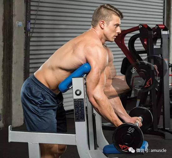 这个动作是就斜托弯举进行了一定的改变。唯一的不同在于在斯科特弯举中,斜托板的角度更加抖——所以动作更加难。