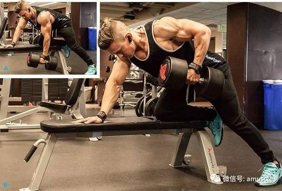 单边的划船动作使得每一次的收缩都非常强烈,每组都能接近力竭。最终,这会导致你的背部肌肉在更长的时间内承受极限张力和大量的代谢压力,促进肌肉生长。