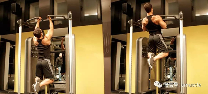 从手臂伸展的位置开始拉,抓住把手以保持背阔肌和肩部肌肉的张力并且挤压你的臀部肌肉。通过驱动你的手肘向下来使得下巴超越把手,缓慢地控制住自己的下降。