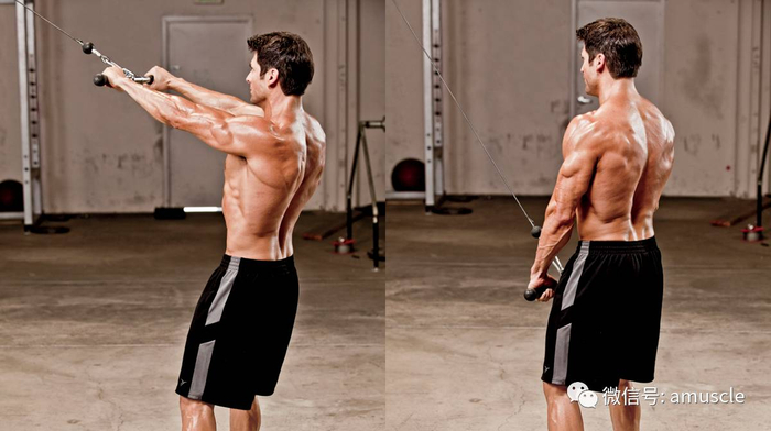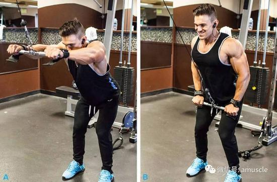 在一些拉的动作中,二头经常会限制到你。但是当你练单关节动作时,二头不会影响到你,所以你可以更加有效地孤立背阔肌。直臂下压在这方面做得非常棒。