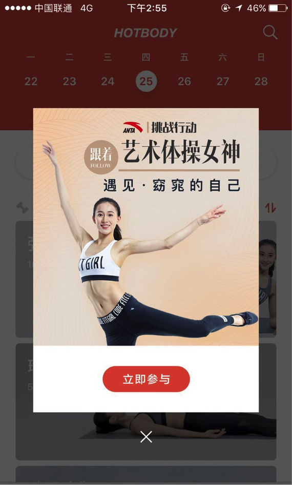 除了亲自参与课程设计与拍摄外,张豆豆还入驻火辣健身App,与用户进行互动交流。同时,火辣健身为系列课程搭配了挑战活动,邀请App用户训练课程累计次数完成挑战,大大提升了课程的关注度和参与人数。