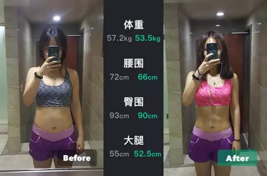 于是就这样坚持了28天,体重从57.4减到了53.5斤,差不多减掉了8斤的体重,身体的围度也在减小,就连小腿都细了0.5cm,整个人看起来瘦了一圈。