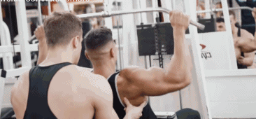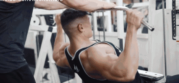 动作2,坐姿利用绳索+直杆做下拉,这个动作超宽握距,同样,使用大重量,并且要伙伴来辅助 - 在下拉的过程中轻微借力给你,使用的重量逐渐的递增,每组做10 - 8次