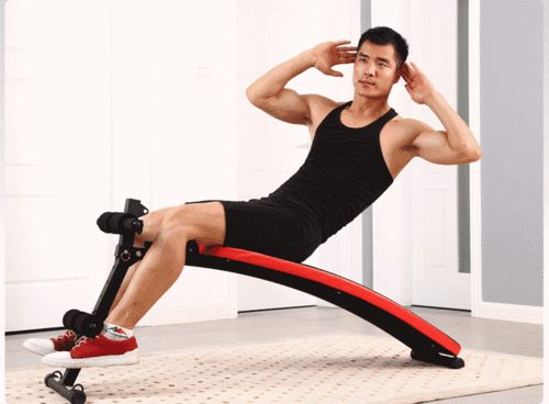 上斜卷腹这一方法需要借助辅助工具,首先我们要仰面躺在一个上斜坡上,双手抓住头顶端的扶手,然后抬起双腿,使腿垂直于上斜板。双脚合拢,脊柱贴紧板面,当感觉身体卷曲到极点时,停顿2秒,然后缓慢回到最初的位置,重复做20次左右。