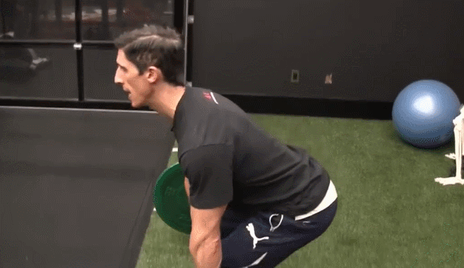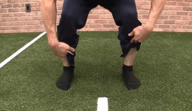 在做向下蹲的训练动作时,为了保证训练效果,防止肌肉拉伤、膝盖磨损,我们要学会活用髋关节铰链的动作机制。将手放在大腿边缘和髋关节中间位置,向下蹲的时候将臀部向后推,从任何角度观察就好像把手藏了起来。这样一个小技巧可以帮助你更好地掌握安全下蹲的正确姿势。