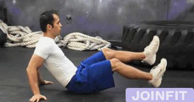 仰卧后略微抬起双腿至膝盖夹角成90°,双手伸直扶在两侧膝盖附近,利用腹部力量抬起上身,然后双手离开双腿伸直,背部和腿部尽量不要贴地,每组10~15次,组数为4到6组。