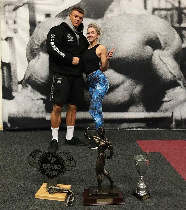 健美神童Brad Willis的奖杯与女友Catherine,生活中Catherine也是一名健身达人。他们热爱健身房,并且都非常崇拜施瓦辛格,而Brad Willis能有今天这样的成绩完全是因为受到施瓦辛格的影响,甚至是他的训练方案都是按照施瓦辛格的健美书籍上进行的!