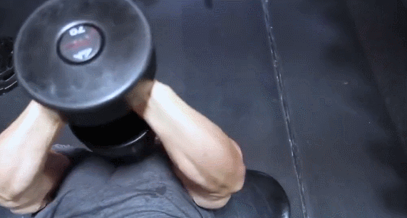 这个动作的主要目的就是充分拉伸我们的背阔肌,而在握哑铃的时候,练胸的时候我们可以两掌心相对而握,但是在背部训练中,卡特推荐我们手掌一上一下的握,这样双手环绕这哑铃,能够更好的刺激背阔肌。