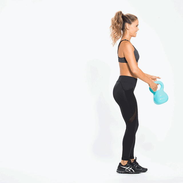 动作要点:两腿距离略宽于肩部。臀部往后方俯身做弯腰动作,后背处于平直状态。 单手将壶铃在两腿中间移动到另一只手上面。需要注意的是另一只手必须从后方伸出。