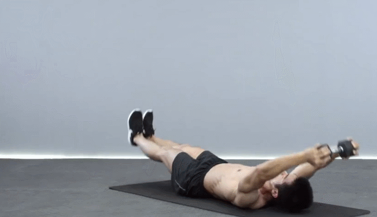 这个动作是升级版的双向卷腹,在练习时我们要在手上拿着一个轻重量哑铃,让你的锻炼动作升级。