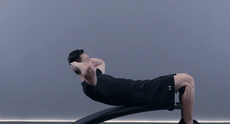 这个动作在练习时我们要躺在腹肌凳上进行,在运动时没必要让自己的身体完全的向上,让你能感受到腹部有蜷缩的感觉时腹肌就已经得到不错的锻炼效果了。