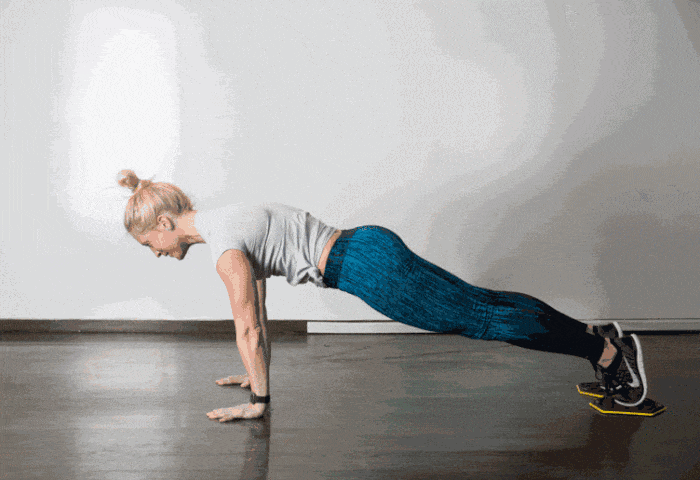双手撑地,脚蹬地快速进行提膝运动。锻炼下腹部,腹部核心肌群。