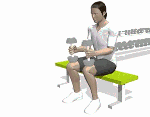 1。在一个平椅前放置一个约30公分高的块状物体。坐于平椅之上,将前脚掌跖骨置于身前的块状物体上。