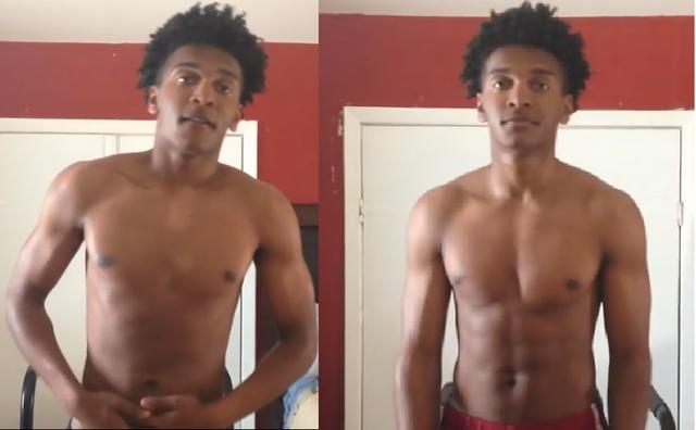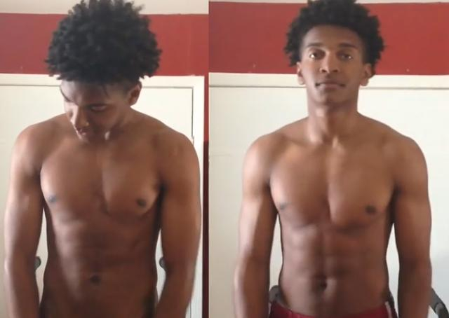 黑人小伙每天做100个双杠臂屈伸 2周后的对比图!