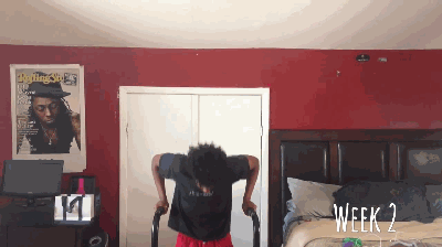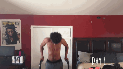 一位黑人小哥做了个试验,2周时间,只用一个双杠臂屈伸动作锻炼,体型会有什么改变?