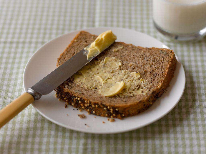 当你处在减脂期一定要格外的注意,100%全麦面包必须是无糖少油的,不要为了追求口感而抹许多酱料上去。