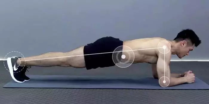 标准的平板支撑,应以手肘与脚尖撑地,头部保持中立的位置,侧面观,耳、肩、髋、膝、踝在同一条直线上,在训练过程中,保持正常的呼吸频率。