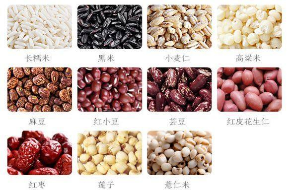 主材料:大米、糯米、小米、江米、黑米、薏米、红豆、白芸豆…