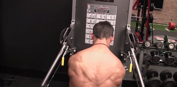 首先从后面开始,因为大多数的背部肌肉都练得不好,而这是一个相当好的动作,当你要用等长收缩的方式来训练,有两件事要去做,我们需要用到一个最大的重量,因为我们不是真的要去移动它,我们希望用伸展后的姿势去训练,用伸展后的姿势让肌肉收缩来锻炼,当我要加强后侧链,如果我要先伸展开来,我就要先用右手抓住左边,用左手去抓右边,现在我要加入张力,让自己往前环抱,之后尽力的拉,虽然一般情况下拉不动,但是这就是等长收缩的训练。