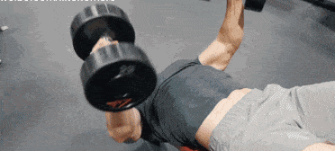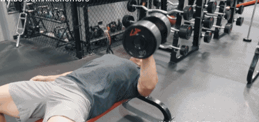 动作1,哑铃平板卧推,这个动作在训练时上推的过程中要旋转手腕,增加训练强度,使用自己能安全控制的大重量训练,如果你的肱三头肌力量不够强大,我建议你降低一些重量,每组做10次。