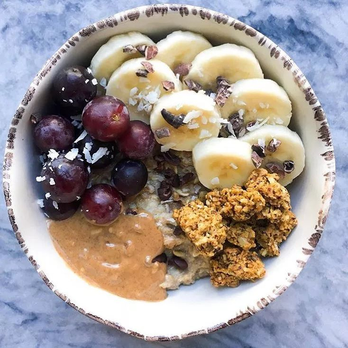 健美训练者的每日食谱公式:适度的蛋白质食品+低脂食品+高碳水化合物食品。