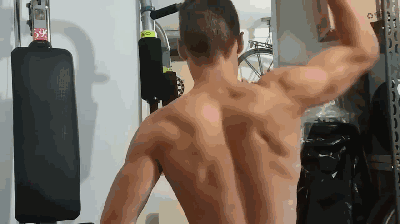 俯卧撑也不局限,他也会练一些难度较高的俯卧撑,来帮助自己的胸肌进一步拓展。
