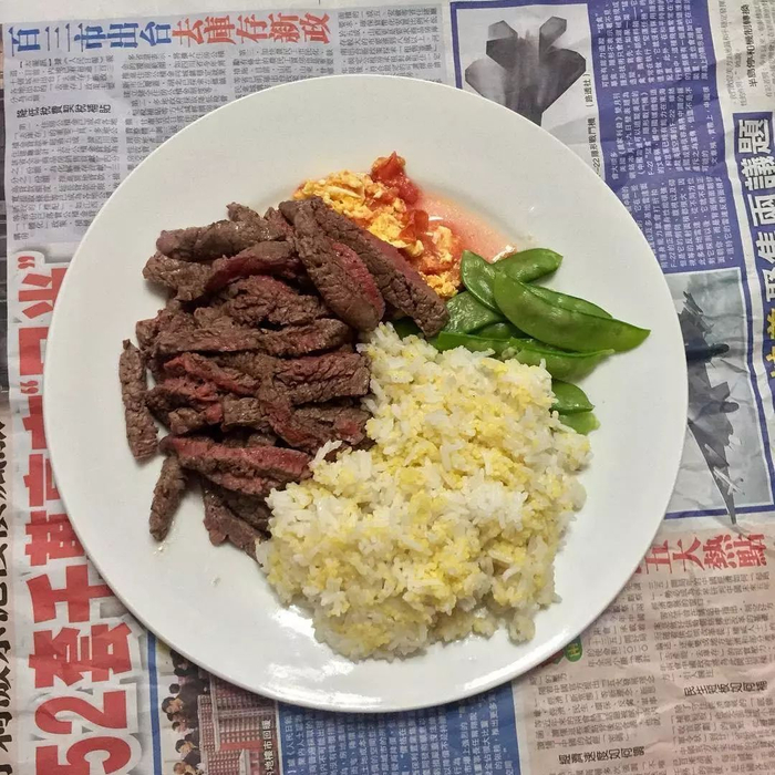 午餐是训练后我的第一顿正餐,我不会一开始就过多地吃下很多的蔬菜,我会选择较容易吸收的米饭和鸡肉,偶尔会选择牛肉,一般而言鸡肉居多。一是性价比高,二是口感熟软。