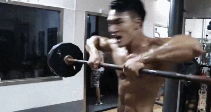 做的时候始终让背部挺直,双手一定要抓握紧,不要让杠铃从手中脱落。