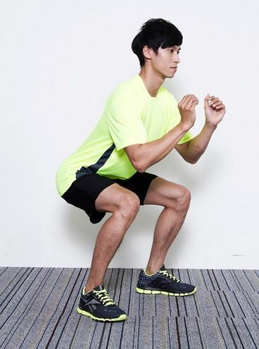 深蹲要点:1。双手抱拳贴于胸口,手肘向下。2。保持腰背挺直,大腿和臀部发力3。下蹲时臀部要低于膝盖4。呼吸同之前的训练一样。动作感觉:大腿内侧以及臀部都会有很明显的酸痛感。常见错误:膝盖超过脚尖解决方法:膝盖朝向脚尖的方向,身体重心稍微向后倒。