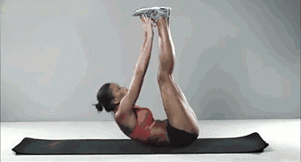 首先让身体躺下,然后双脚直立抬起,双手尽可能的往上摸脚尖。