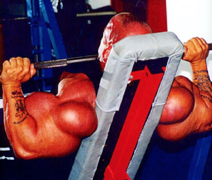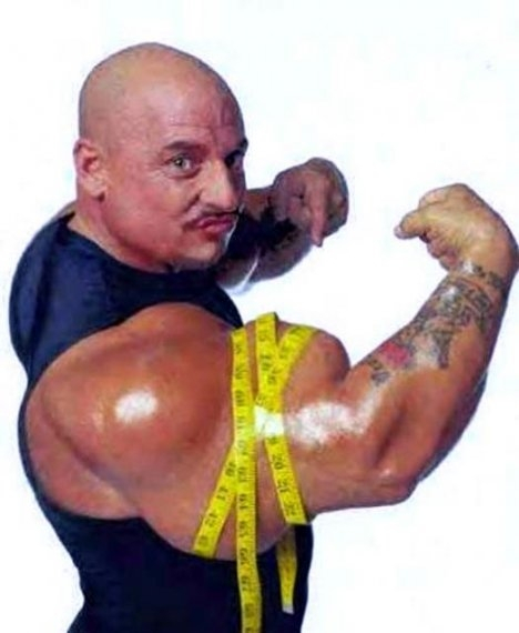 巨臂健美运动员:格雷格·瓦伦蒂诺,美国健美运动员,出生于1960年8月5日(现年58岁),他身高只有168cm,但是体重达到了120公斤,而他的上臂围竟然达到了69厘米!是上个世纪80年代健美界的风云人物(经历了大起大落)!他的名气有多大?接着看: