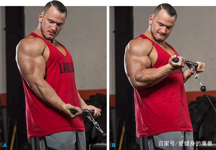 用绳索做的好处是,你可以操纵力的方向,在相同运动范围内使二头获得更多的最大载荷,这是自由器械所没有的。