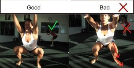 在深蹲中我们的脚会承受着一部分的重力,那么脚摆放的位置正确与否也就显得格外的重要。在图片示范中我们可以看出,正确的深蹲姿势的脚是向外扩的,不是向里收,向外扩的脚会更有力的承受上半身的重力,如果是向内收,那么我们的关节很有可能受到伤害。