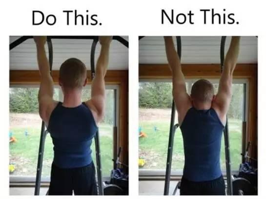 肩胛骨不固定,发力就无法集中与背部,而是由肩部或手臂来取代。所以,在开始动作之前,先做一个肩胛骨后收下沉的动作,稳定好肌肉并预先启动背肌后,才开始拉重量。